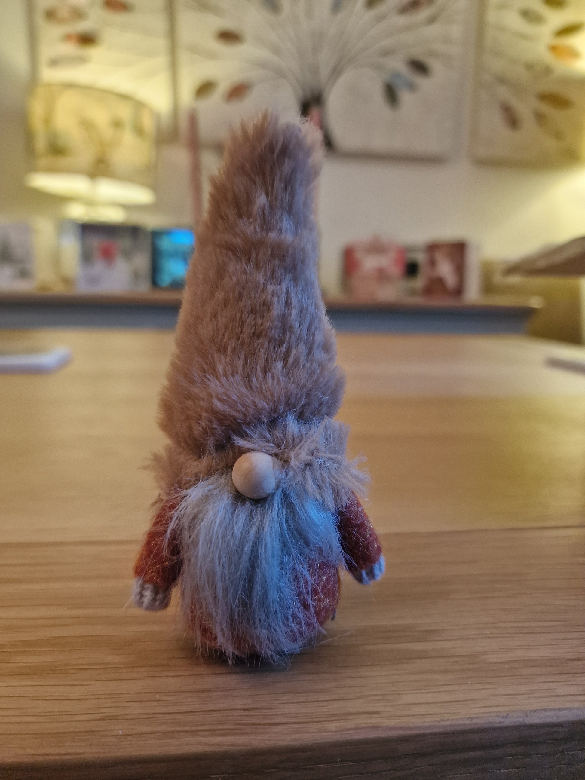 Add a pop of color and a touch of modern style to your home with our Bright Orange Fabric Gonk with Furry Hat. This decorative figurine is designed for year-round display, making it a versatile addition to your home accents. The lively orange hue brings a modern twist to the piece, ensuring it will stand out in any setting. The furry hat adds a unique touch that's sure to catch the eye.