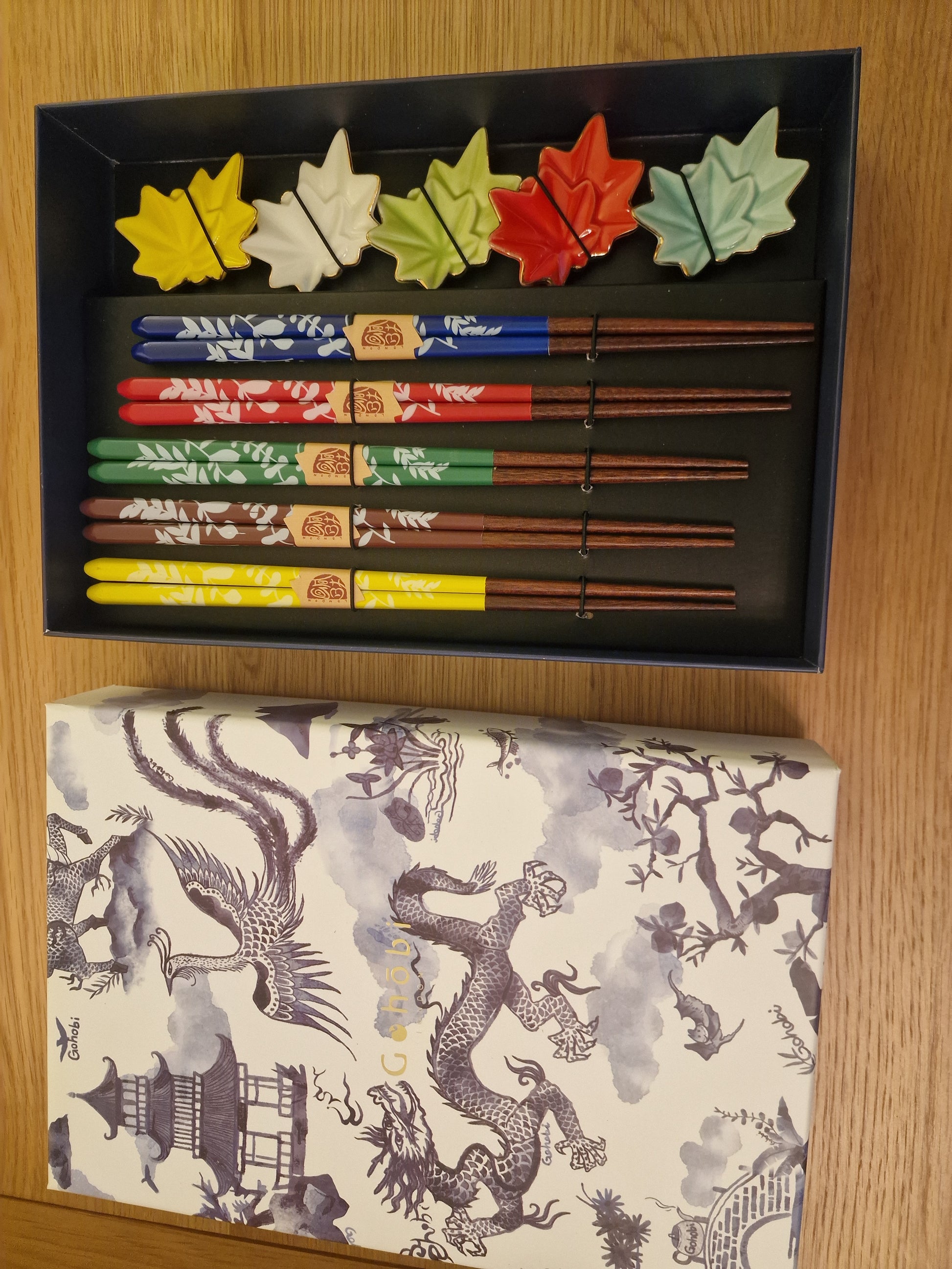 Gohobi A Set of 5 Pairs of Wooden Chopsticks and Rests