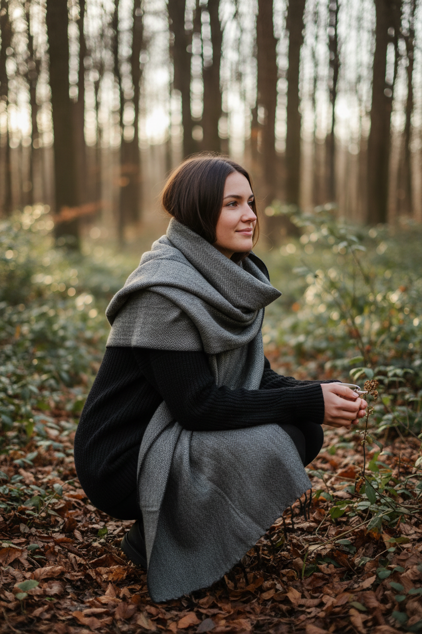 Luxurious Herringbone Weave Oversized Winter Scarf -Ethically sourced and Vegan