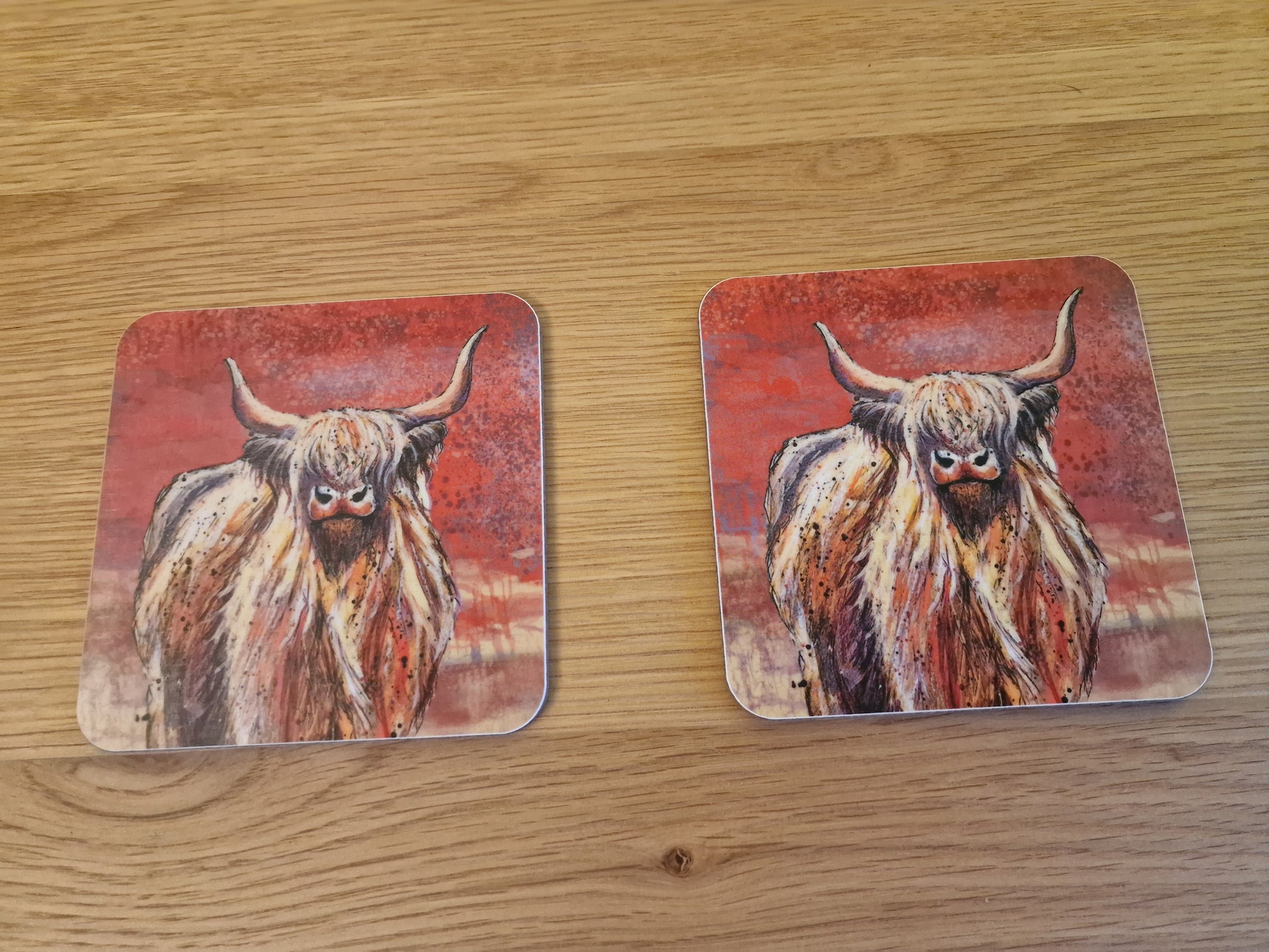 Highland Cow Coasters (Sold in Pairs)-handmade in the UK- Very High quality