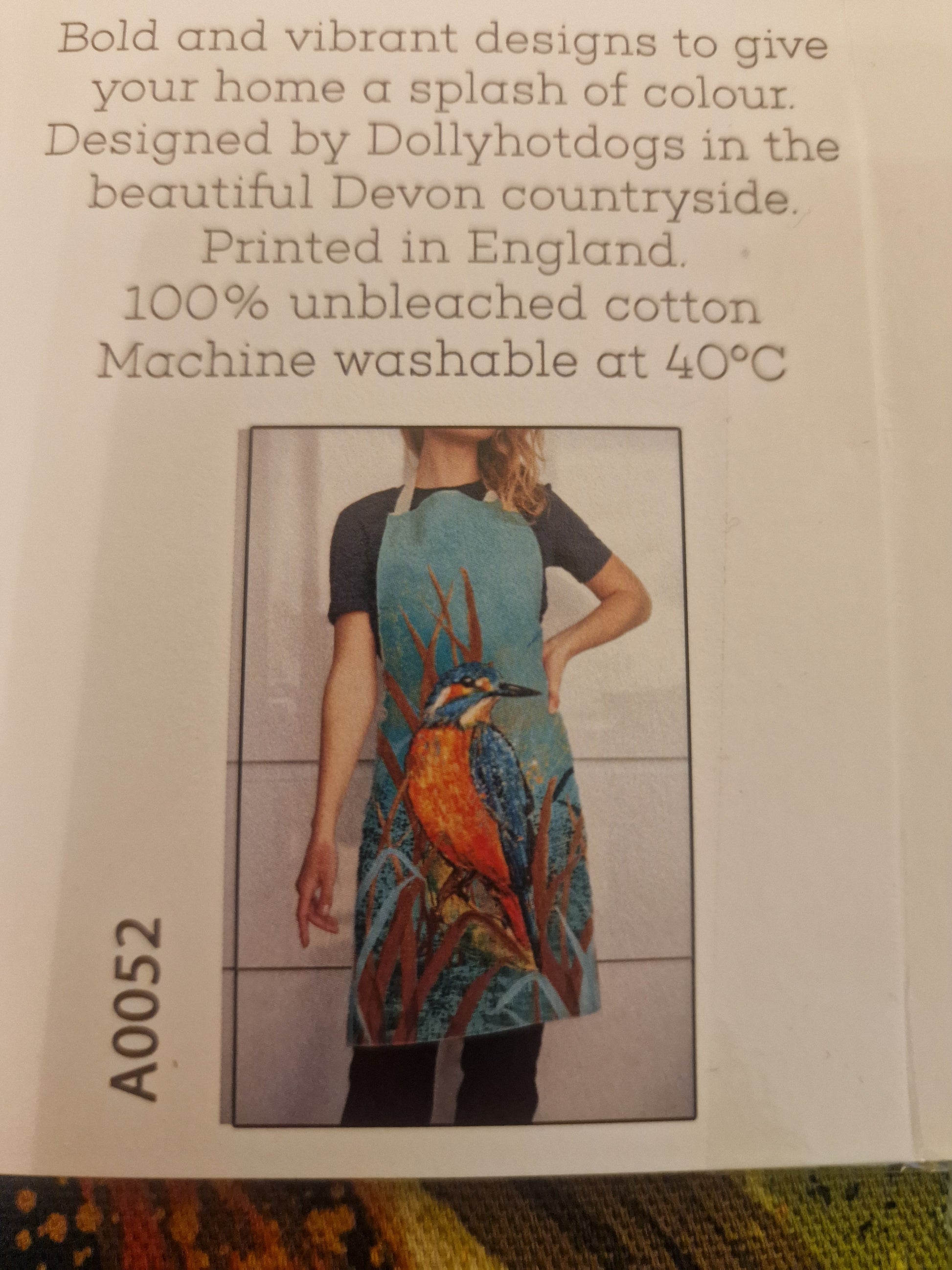 High quality 100% cotton canvas apron in a natural colourLovely vibrant print