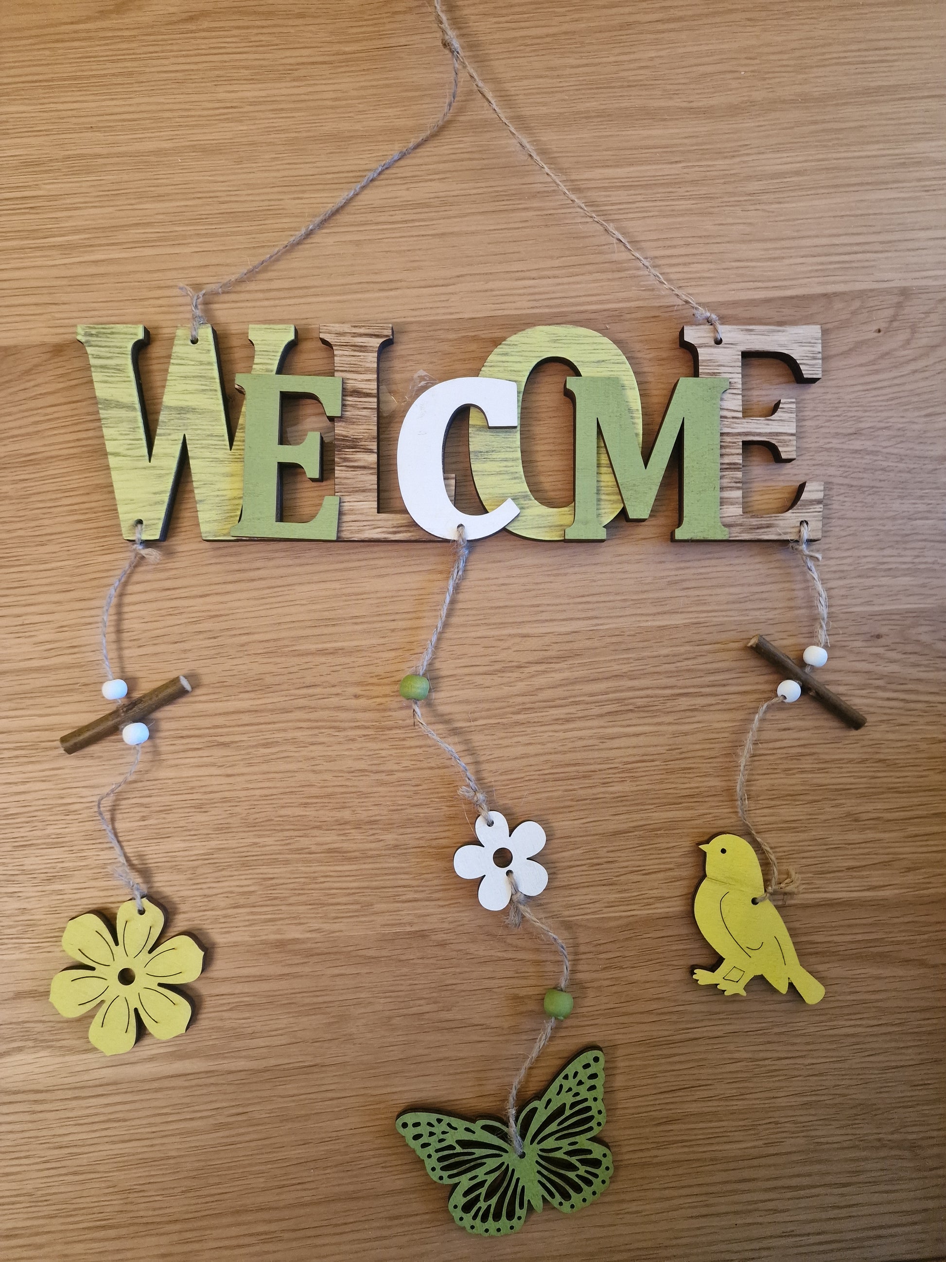 Spring "Welcome" Mobile Sign in green. Pretty!