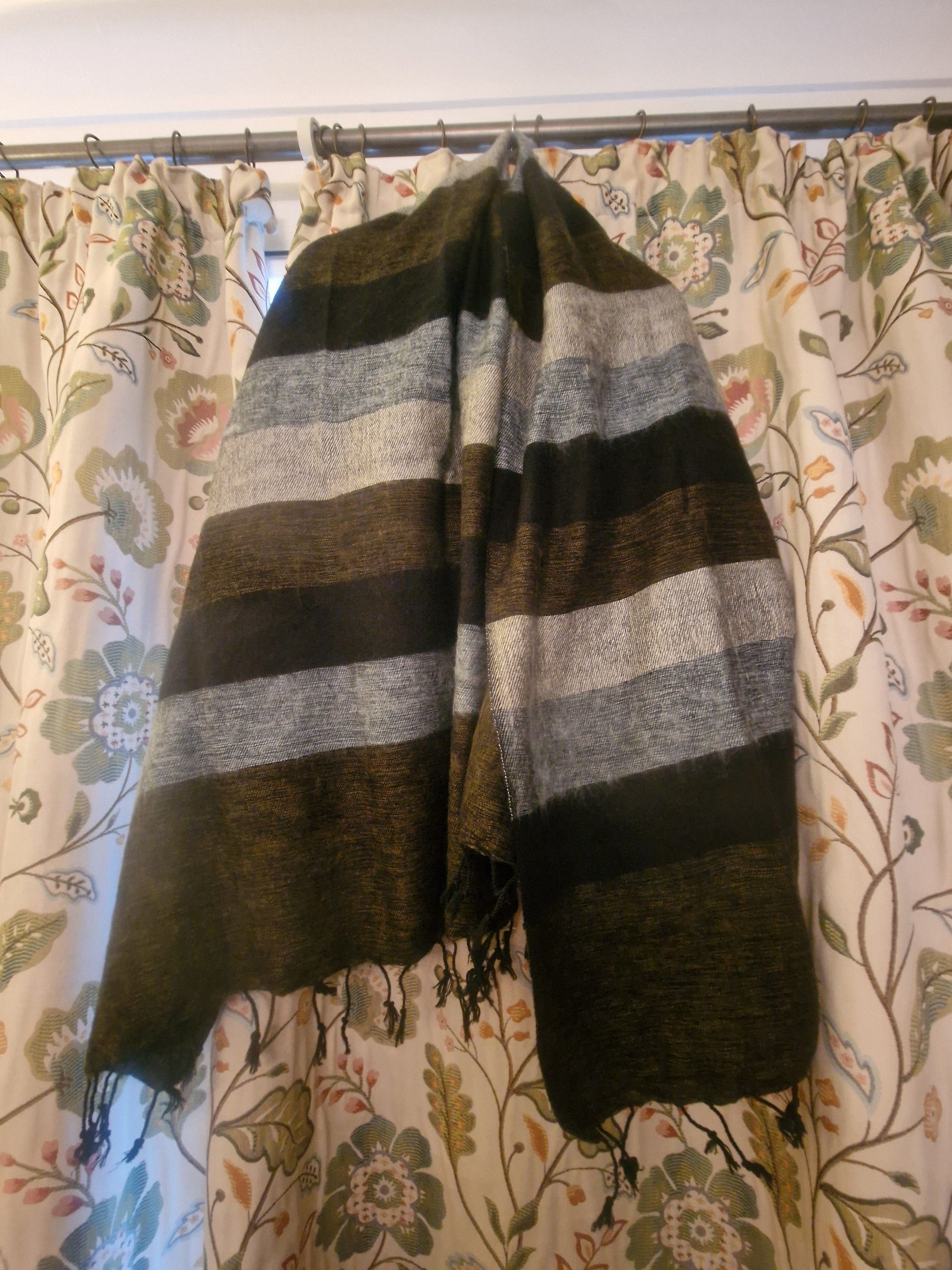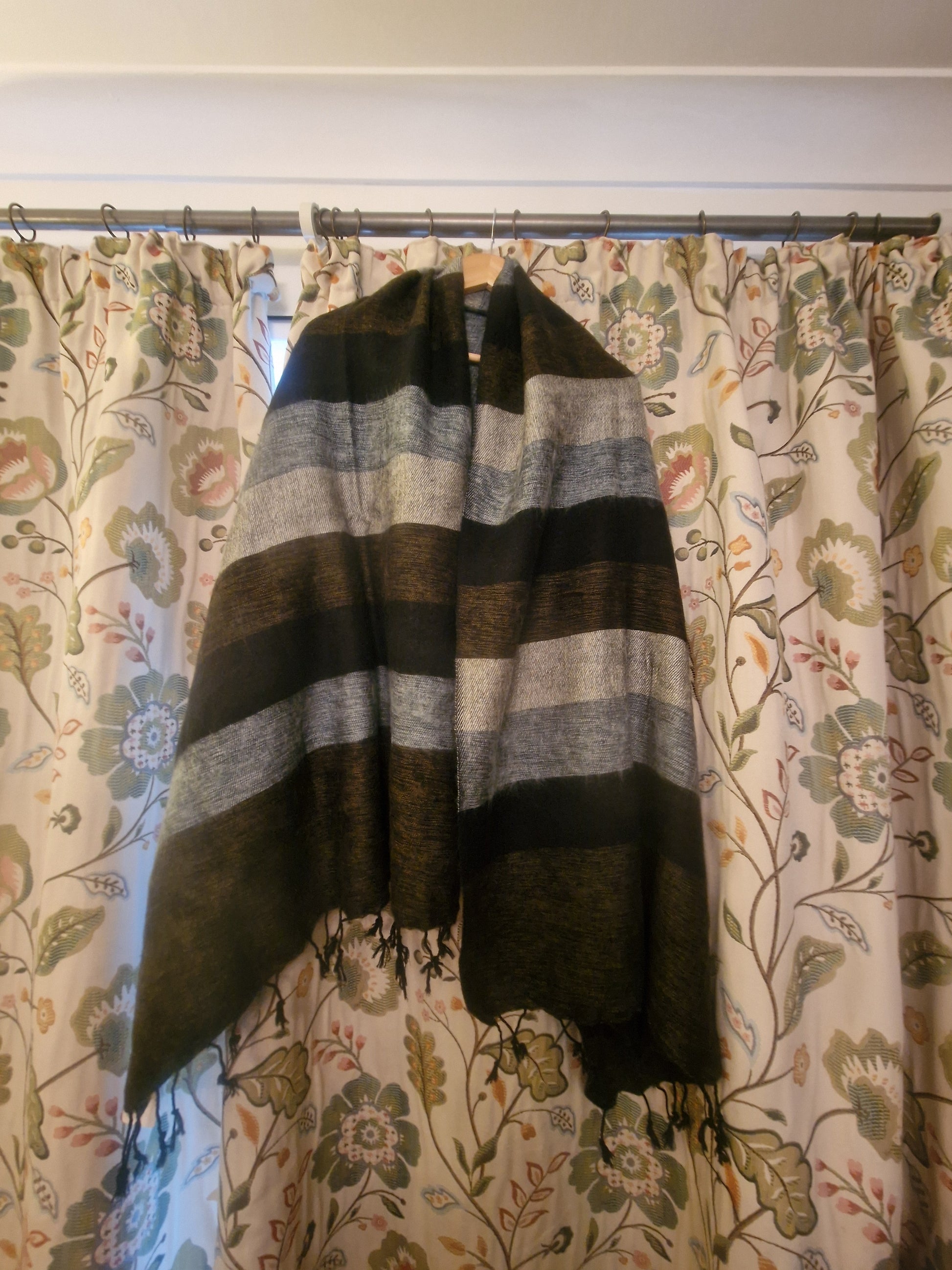 Stripie Nepali Shawls - Charcoal -Ethically produced in Nepal