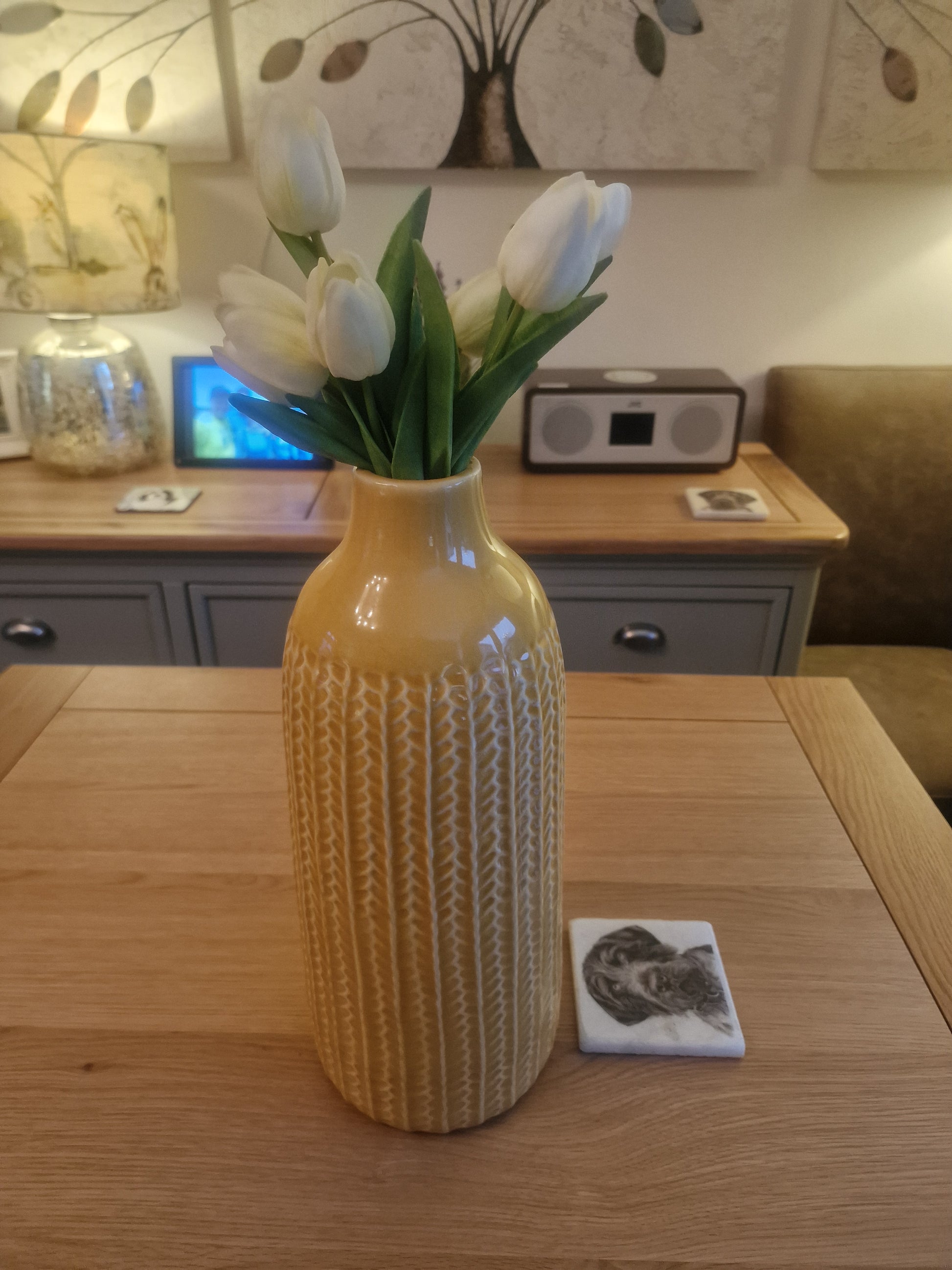 Beautiful Yellow Ceramic Vase Sz 4.5cm BD13.5cm x H38cm